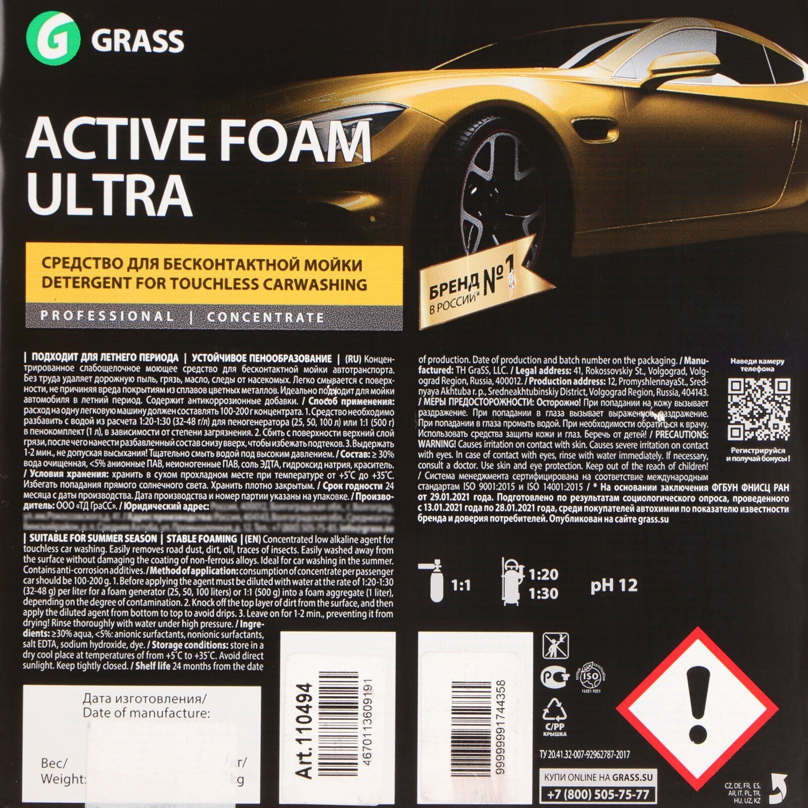 Shampoo for contactless washing Grass, 20 kg, Active Foam Ultra summer/season + anti-corrosion