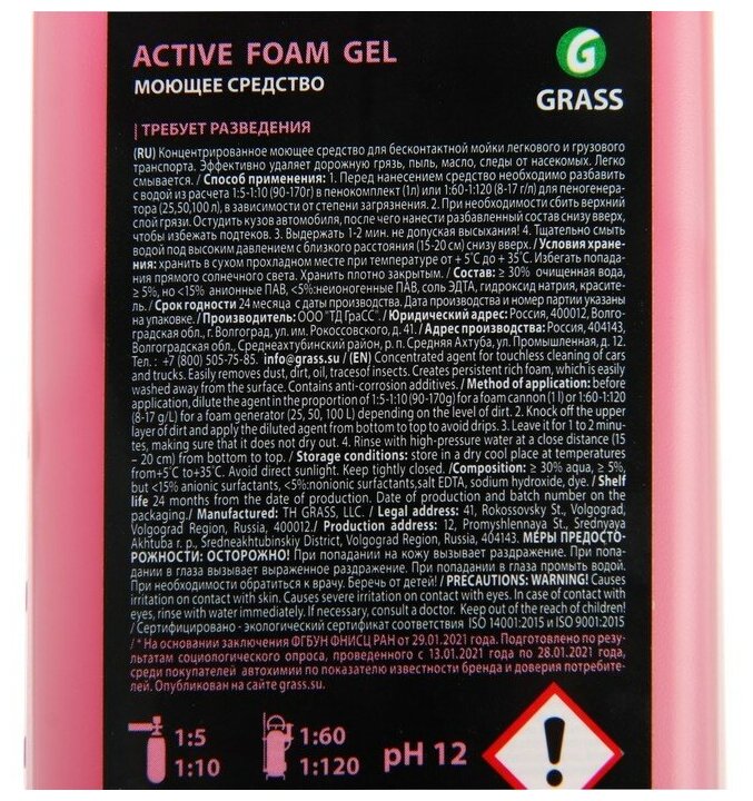 Shampoo for contactless washing Active Foam Gel super-concentrate, 1 l 1:70-1:1:160