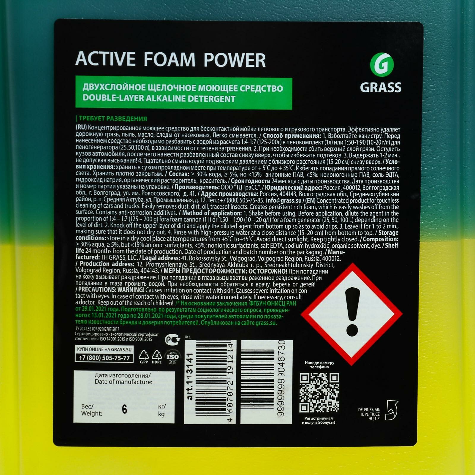 Shampoo for touchless washing Grass Active Foam Power, 2-component, 6 kg 1:60-1:125