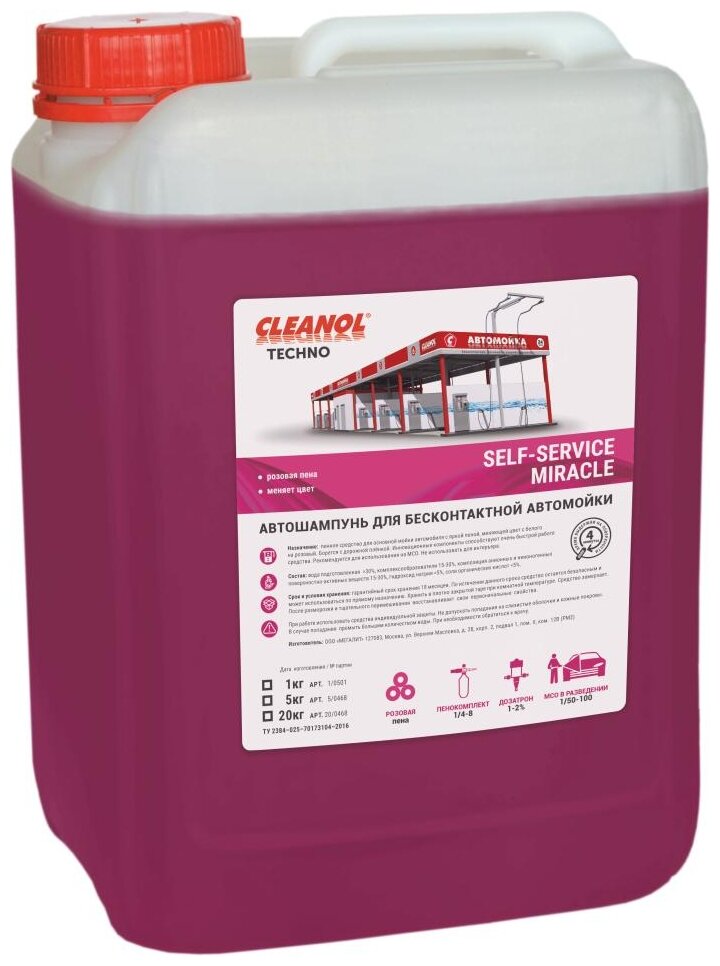 Concentrated 1/100 car shampoo for used car washes with colored foam Cleanol SELF-SERVICE MIRACLE