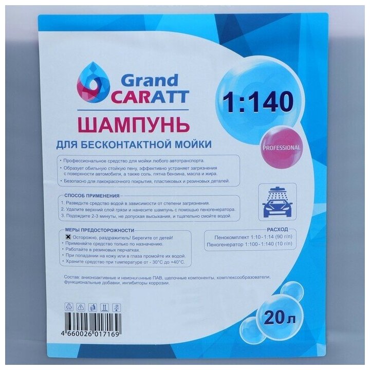 Grand Caratt car shampoo for contactless washing, Professional, consumption 1:100-1:140, 20 l