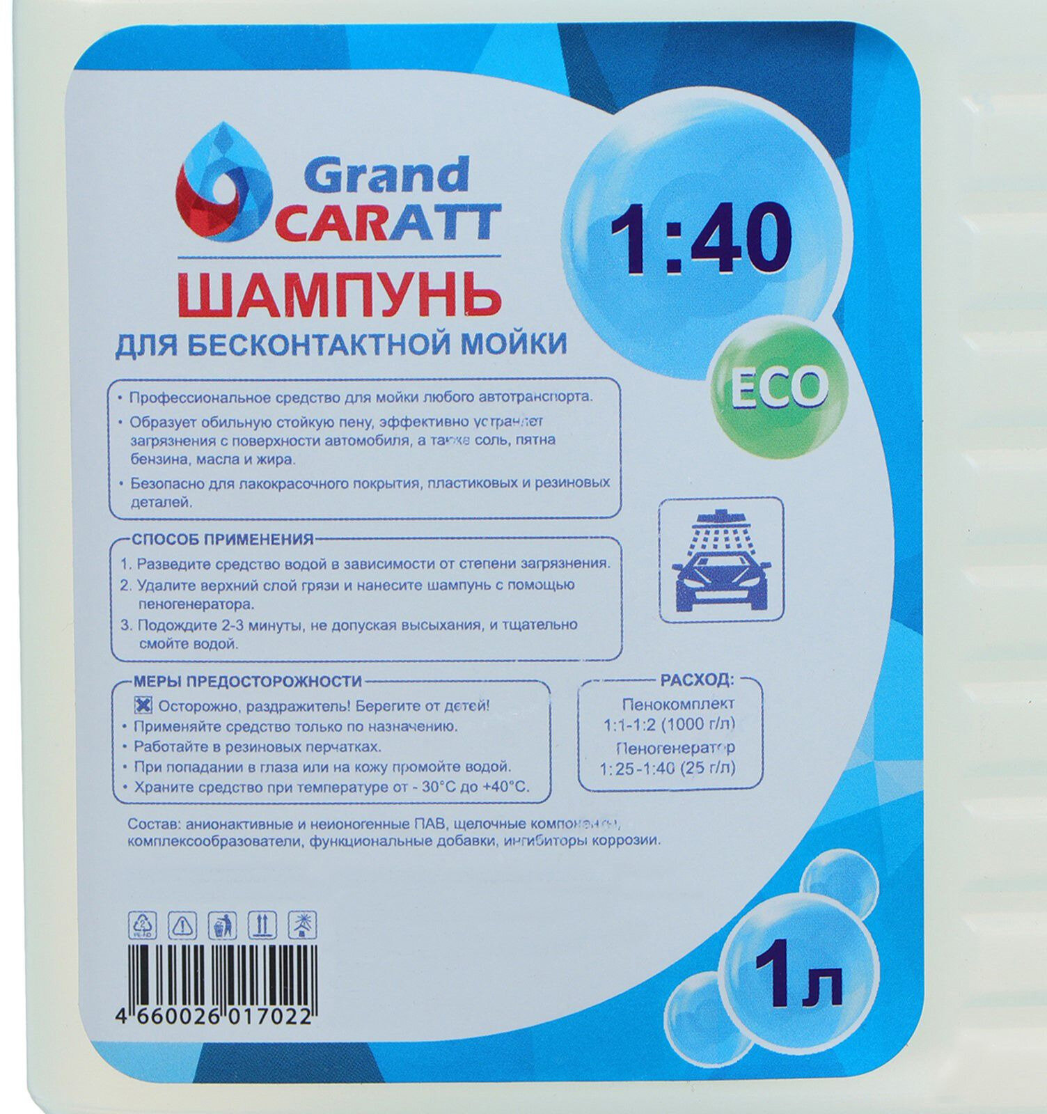 Grand Caratt car shampoo for contactless washing, Eco, consumption 1:30-1:40, 1 l