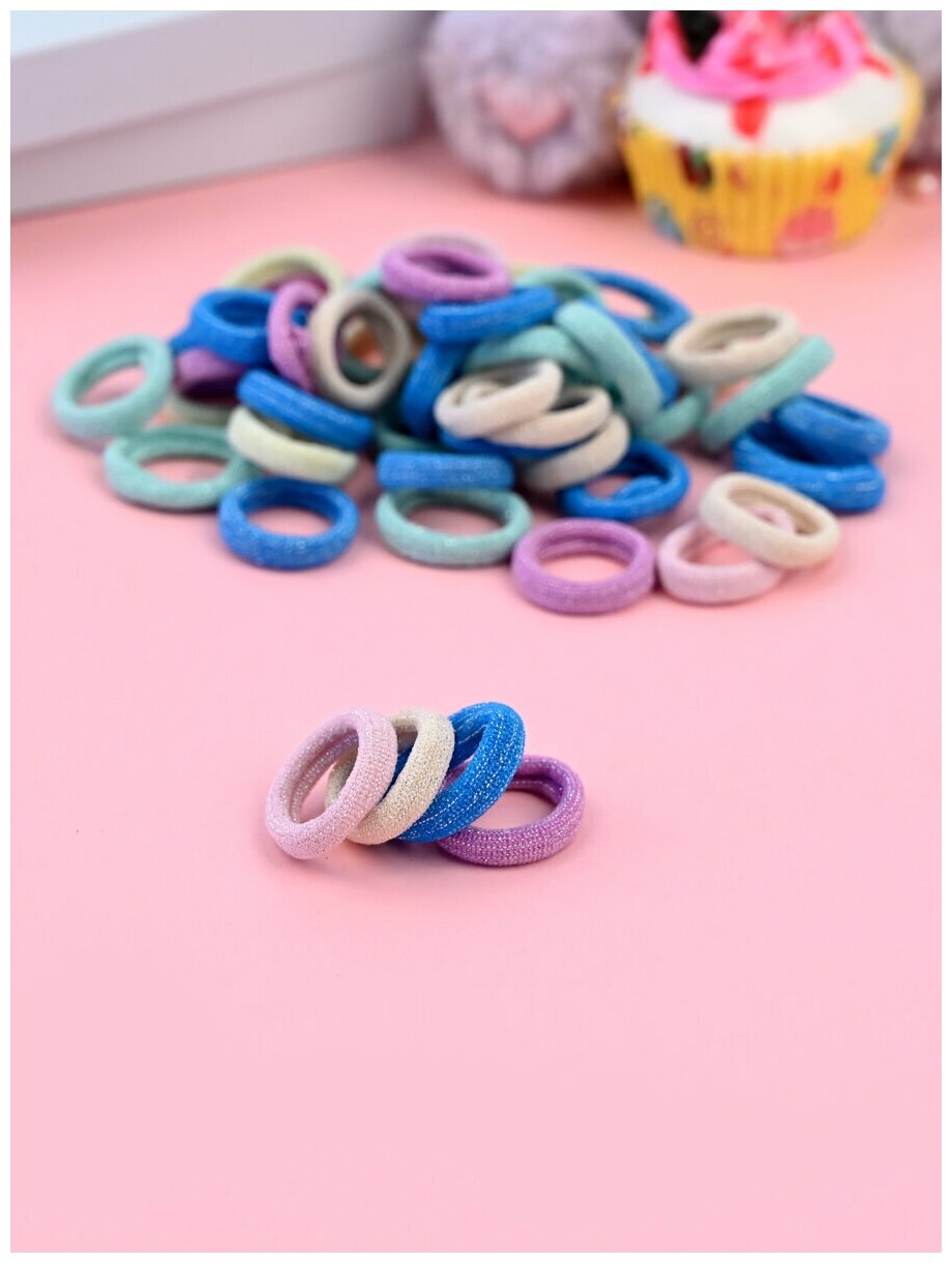 Girls' elastic bands with glitter 50 pcs mix of pastel colors