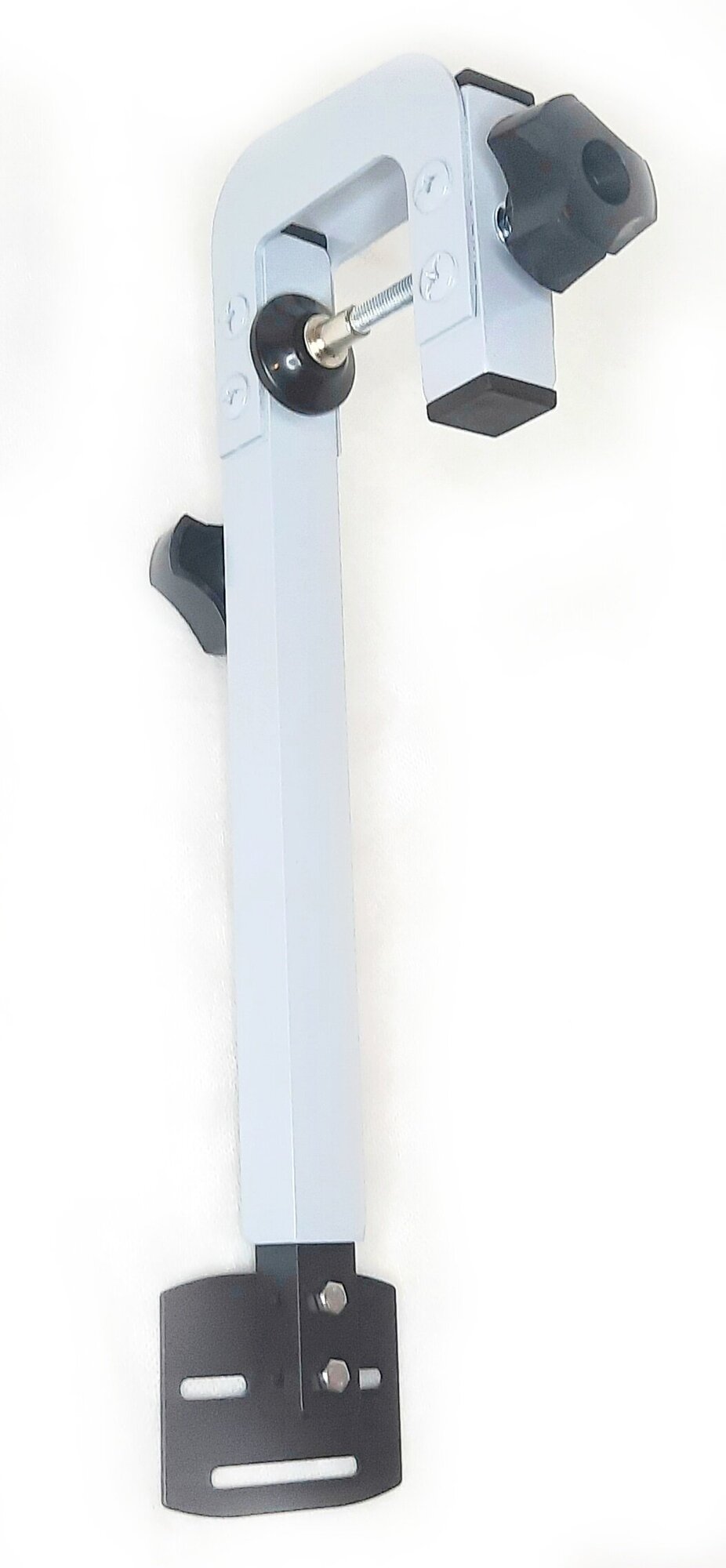 Mounting bracket, clamp for mounting the echo sounder sensor on the transom of a PVC boat