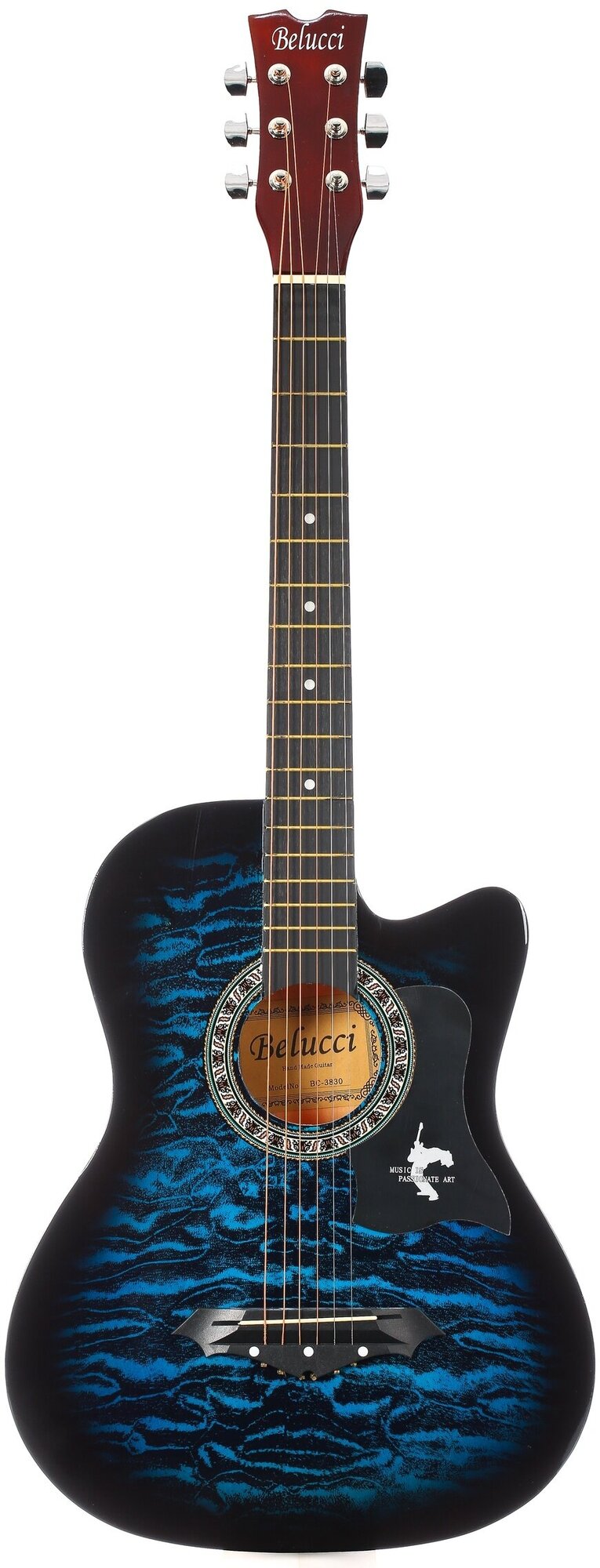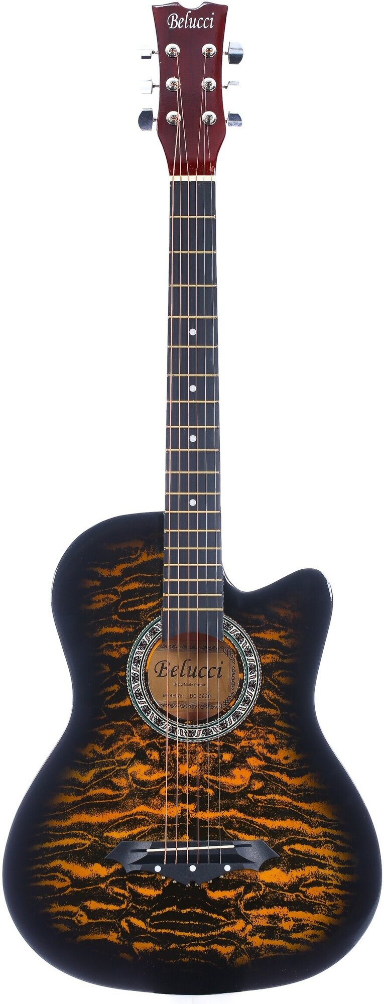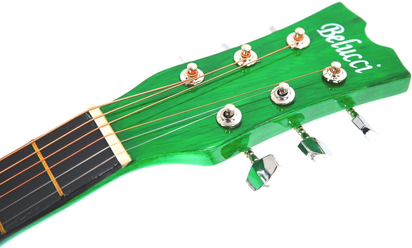 Type: acoustic guitar, body type: folk, orientation: right-handed, number of frets: 19, number of strings: 6, body material: linden, neck material: maple