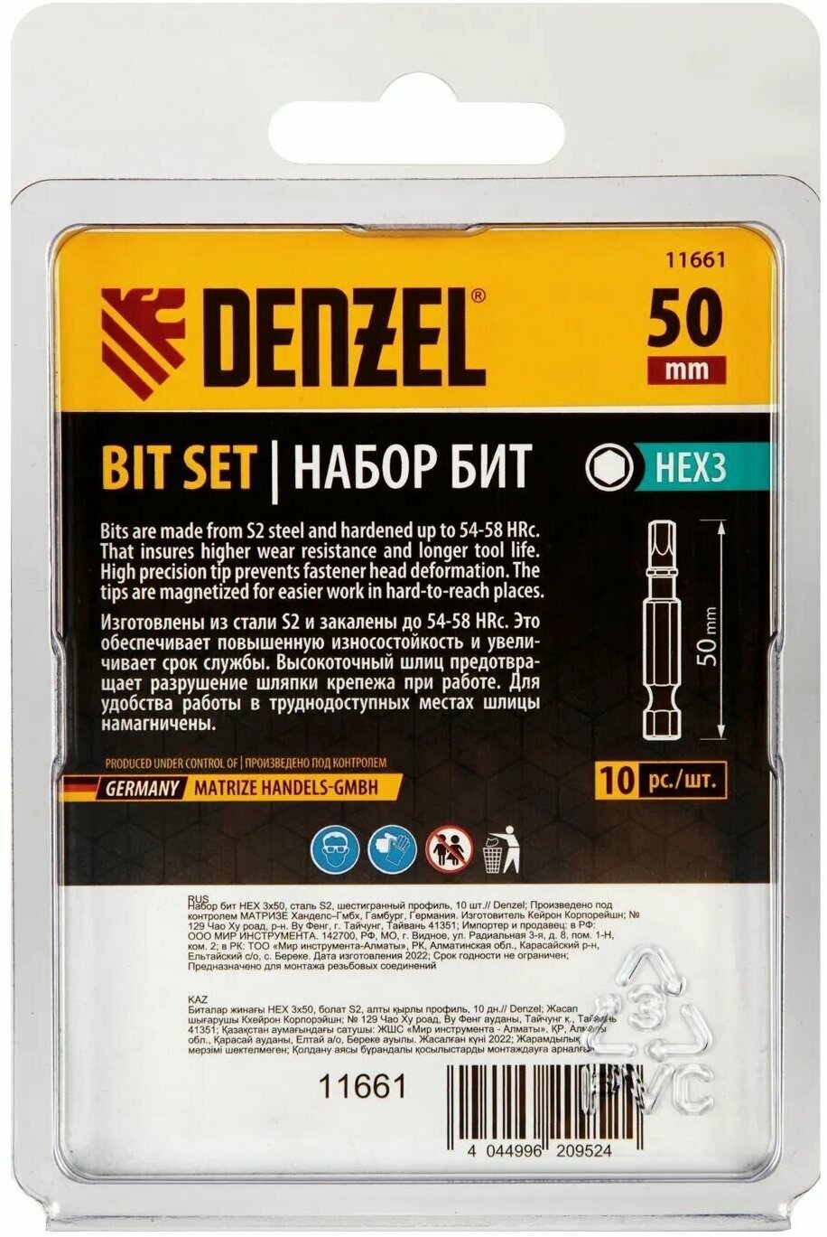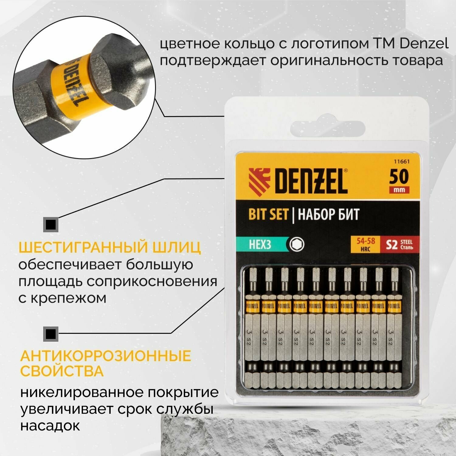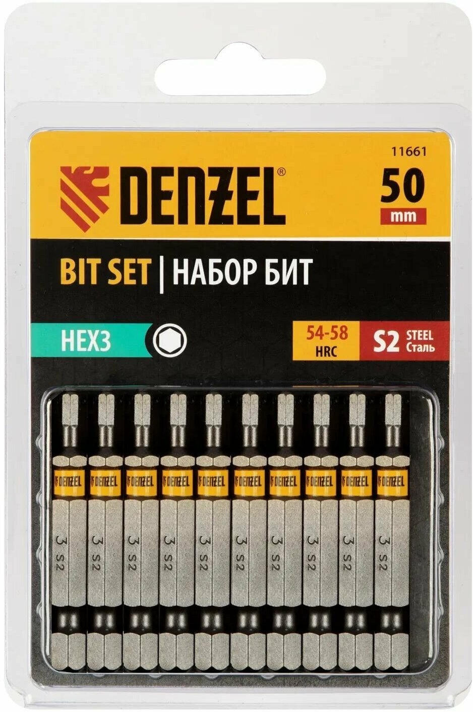 For screwdriver HEX 3x50, S2, hexagonal profile, 10 pcs. E 6.3 Denzel