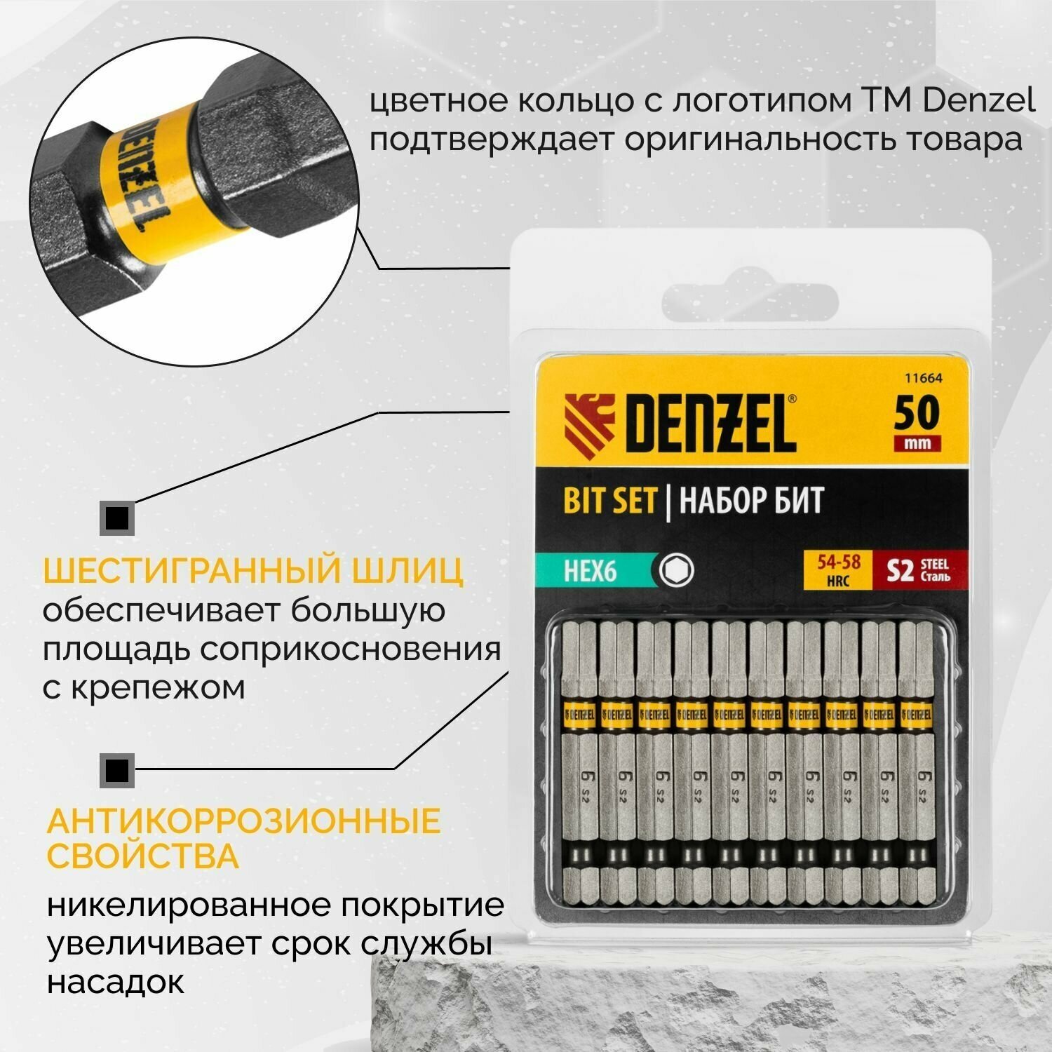 For screwdriver HEX 6x50, S2, hexagonal profile, 10 pcs. E 6.3 Denzel