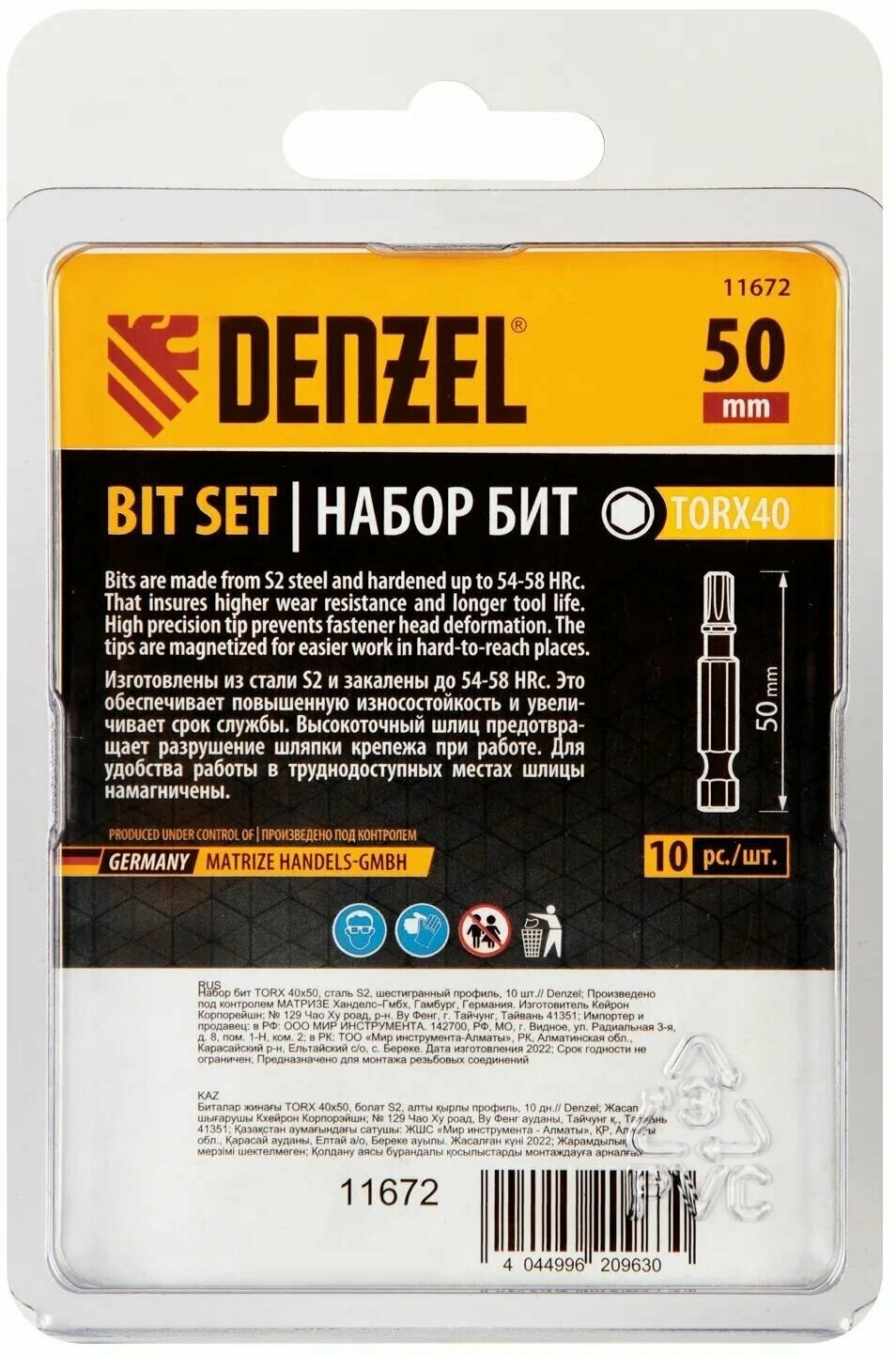 For screwdriver TX 40x50, S2, hexagonal profile, 10 pcs. E 6.3 Denzel