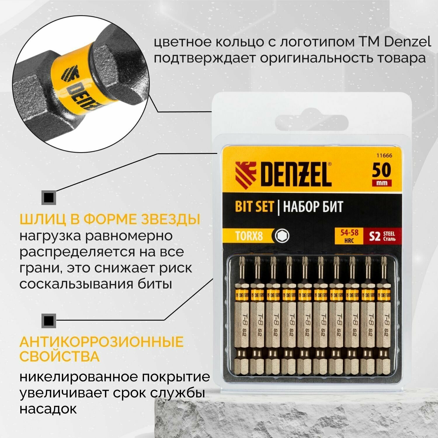 For screwdriver TX 8x50, S2, hexagonal profile, 10 pcs. E 6.3 Denzel