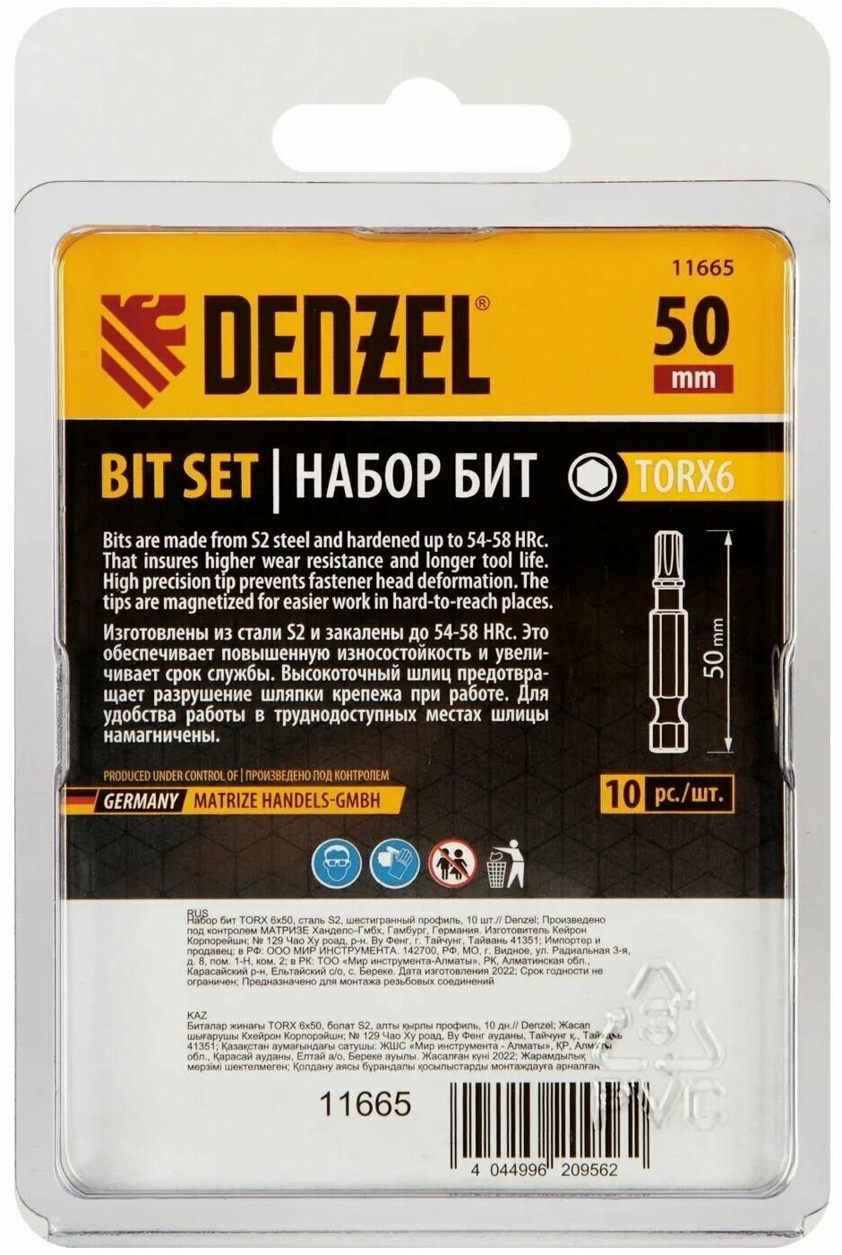 For screwdriver TX 6x50, S2, hexagonal profile, 10 pcs. E 6.3 Denzel
