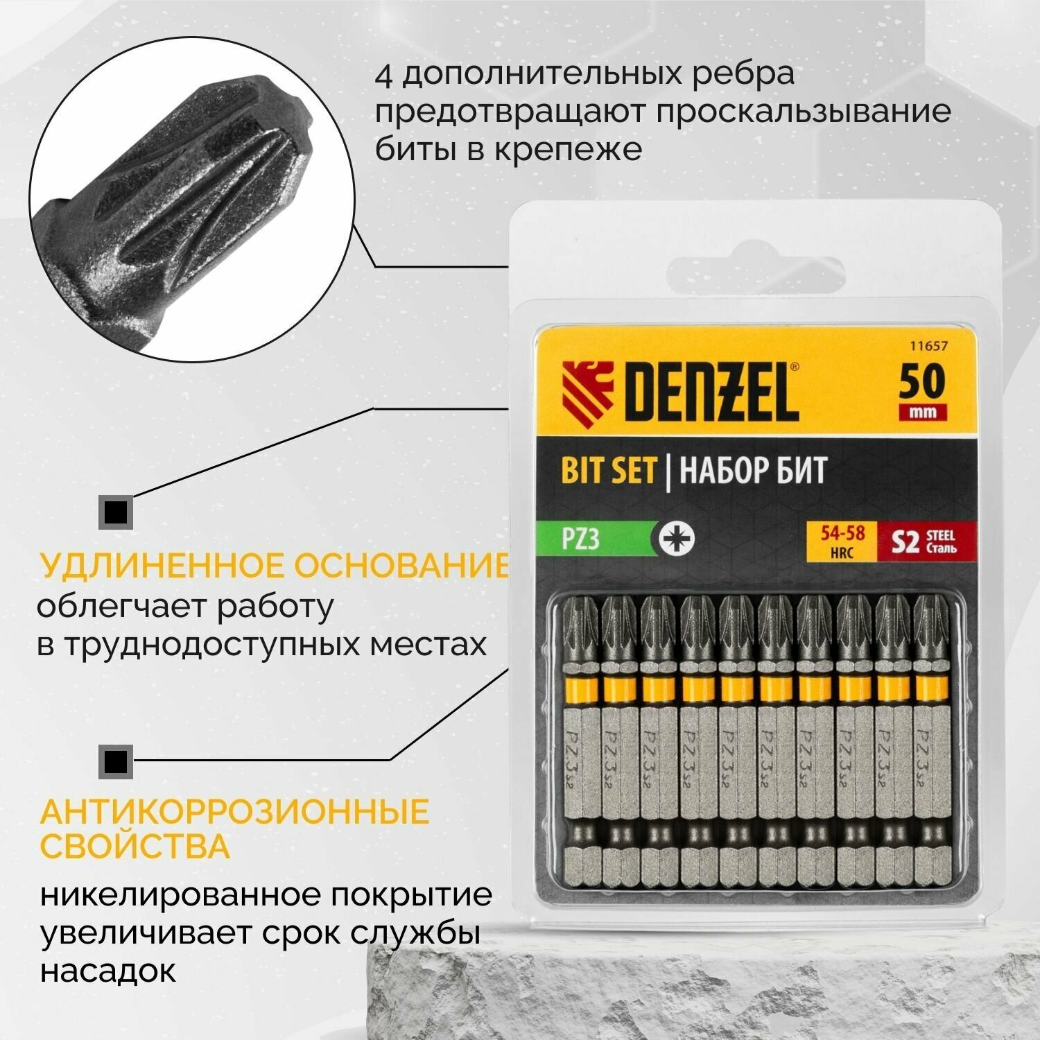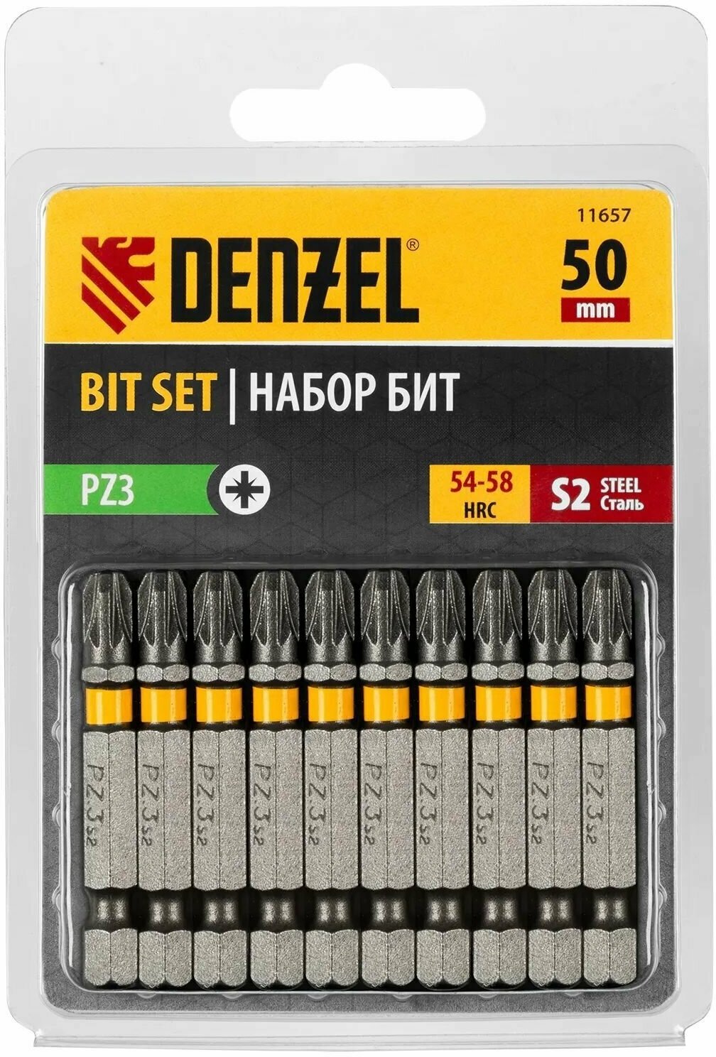 For screwdriver PZ3x50, S2, hexagonal profile, 10 pcs. E 6.3 Denzel