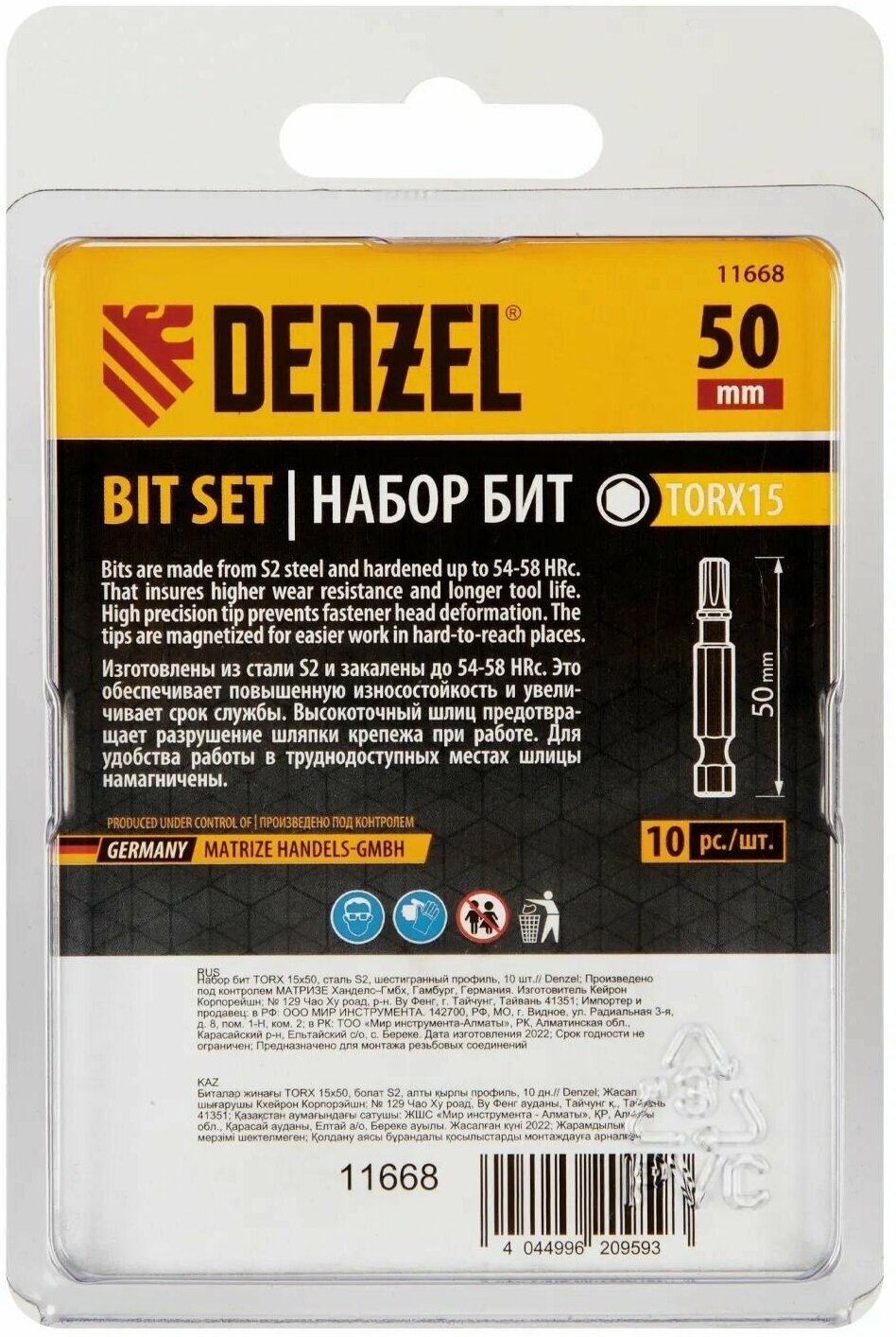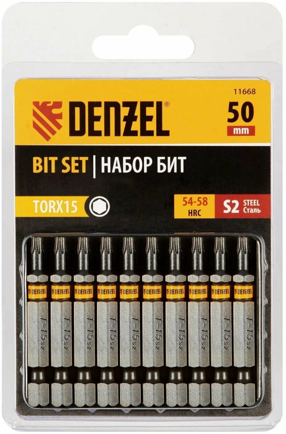 For screwdriver TX 15x50, S2, hexagonal profile, 10 pcs. E 6.3 Denzel