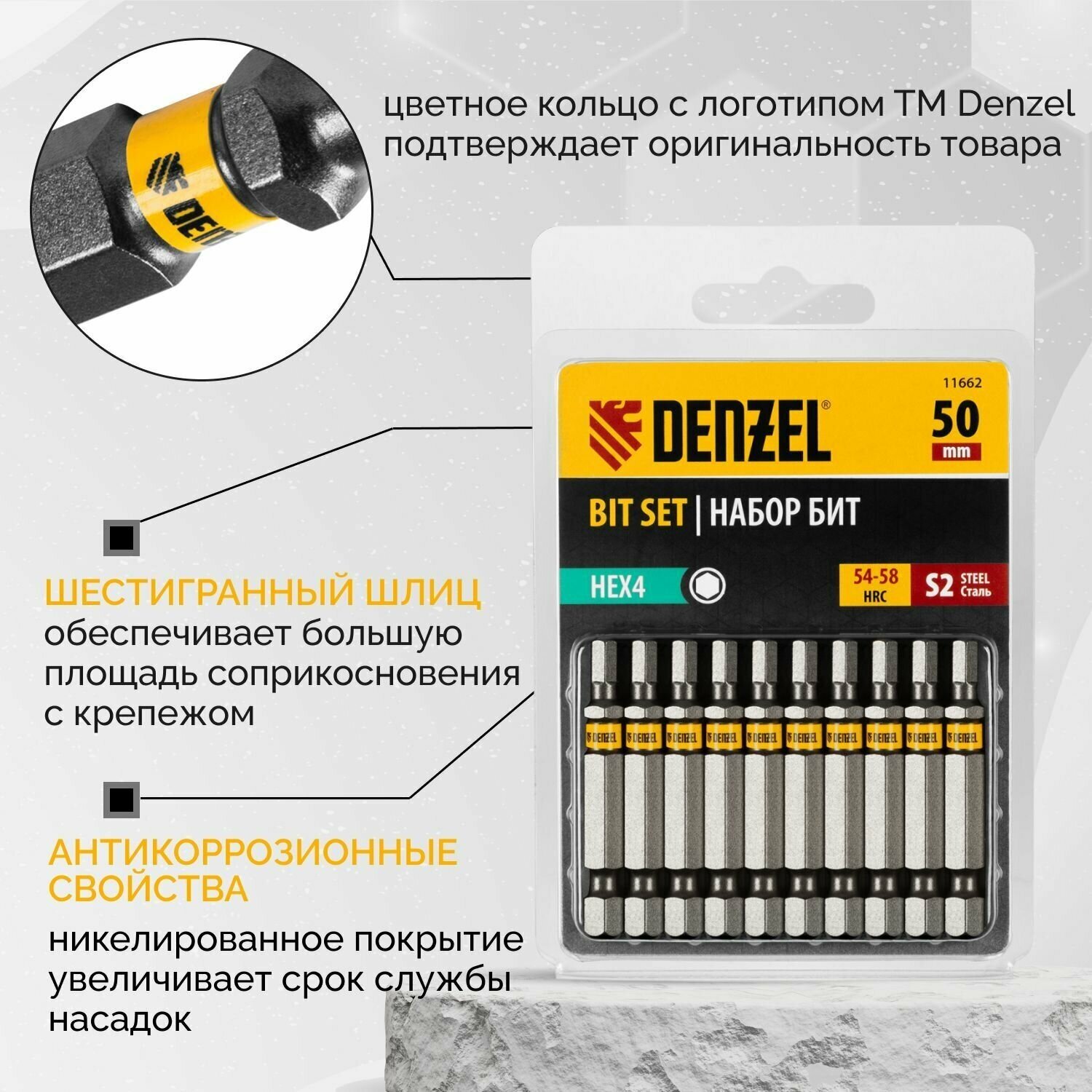 For screwdriver HEX 4x50, S2, hexagonal profile, 10 pcs. E 6.3 Denzel