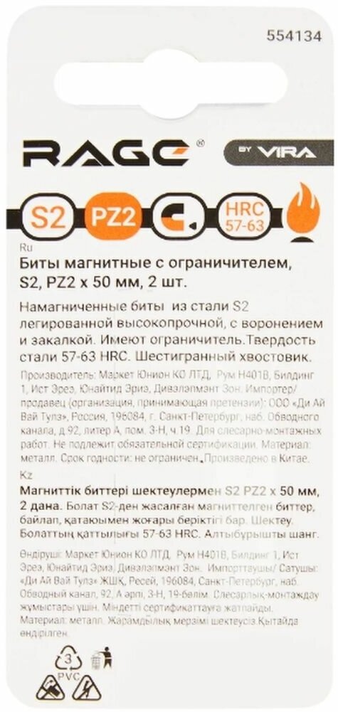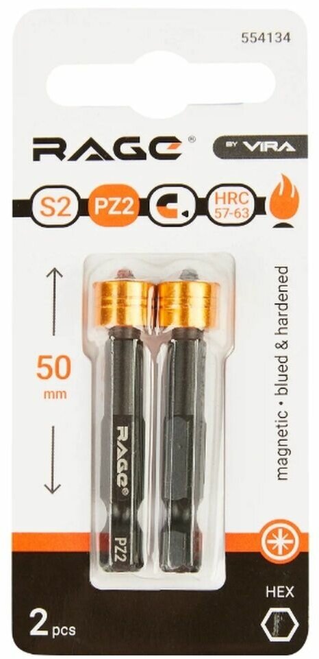 Magnetic bit Rage PZ2 50 mm, 2 pcs.