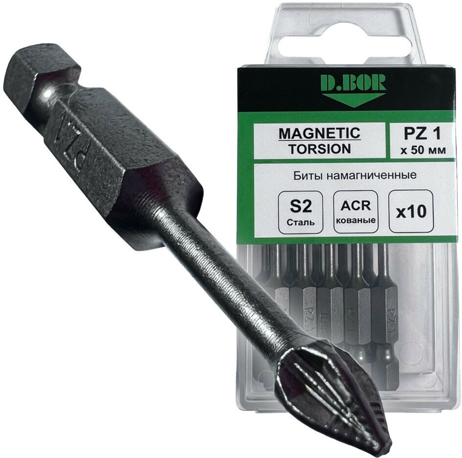 Magnetized bits D. BOR Magnetic E 6.3 PZ1 50 mm 10 pcs art. D08-DMTAPZ01050010