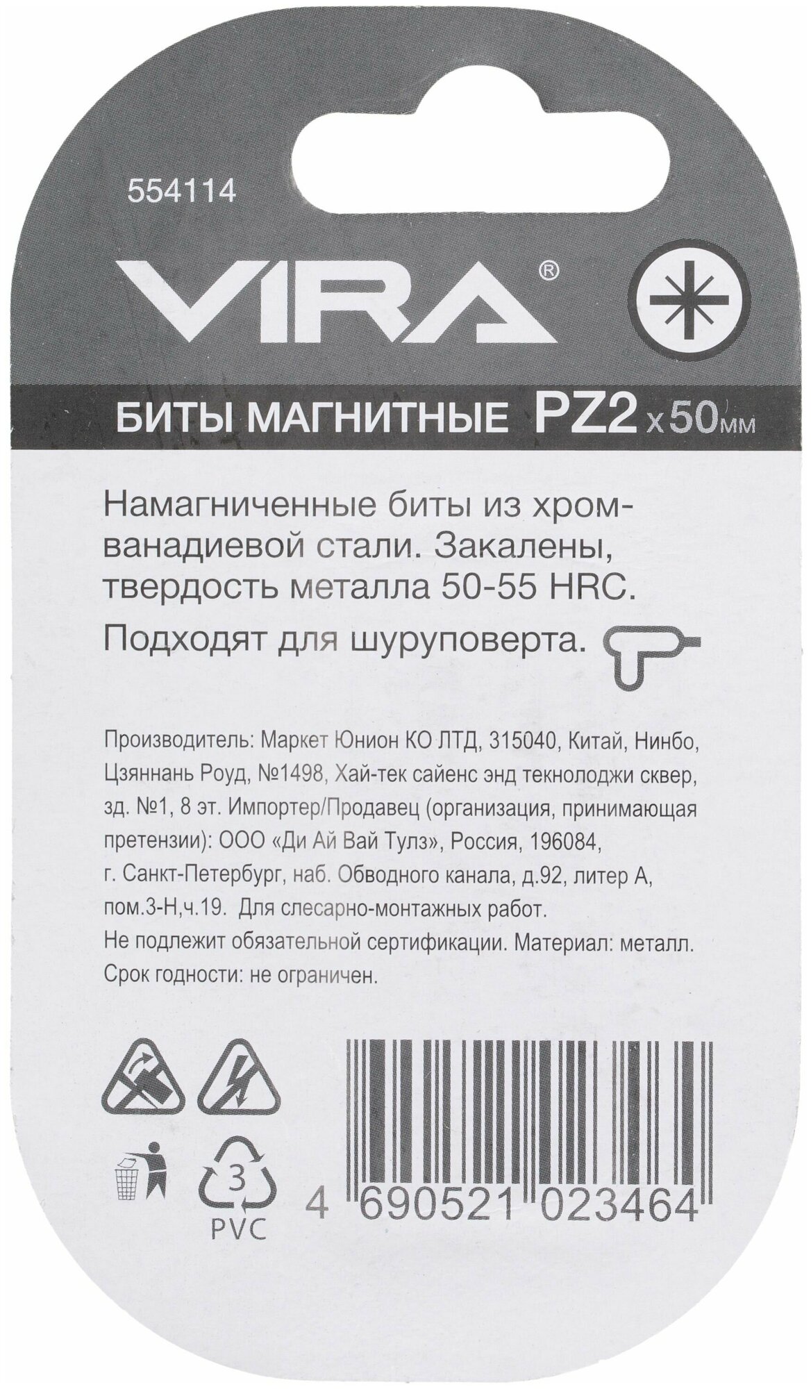 Magnetic bits PZ2, 50 mm, 2 pcs. 10 pieces.