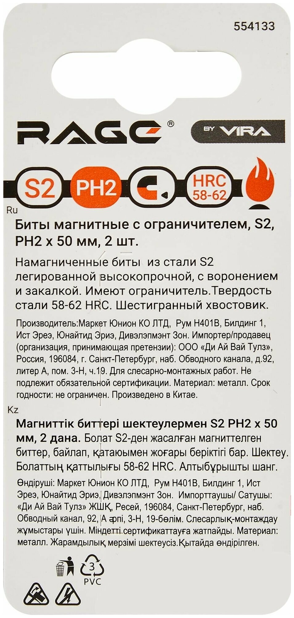 Magnetic bit PH2 50 mm, 2 pcs. 10 pieces.