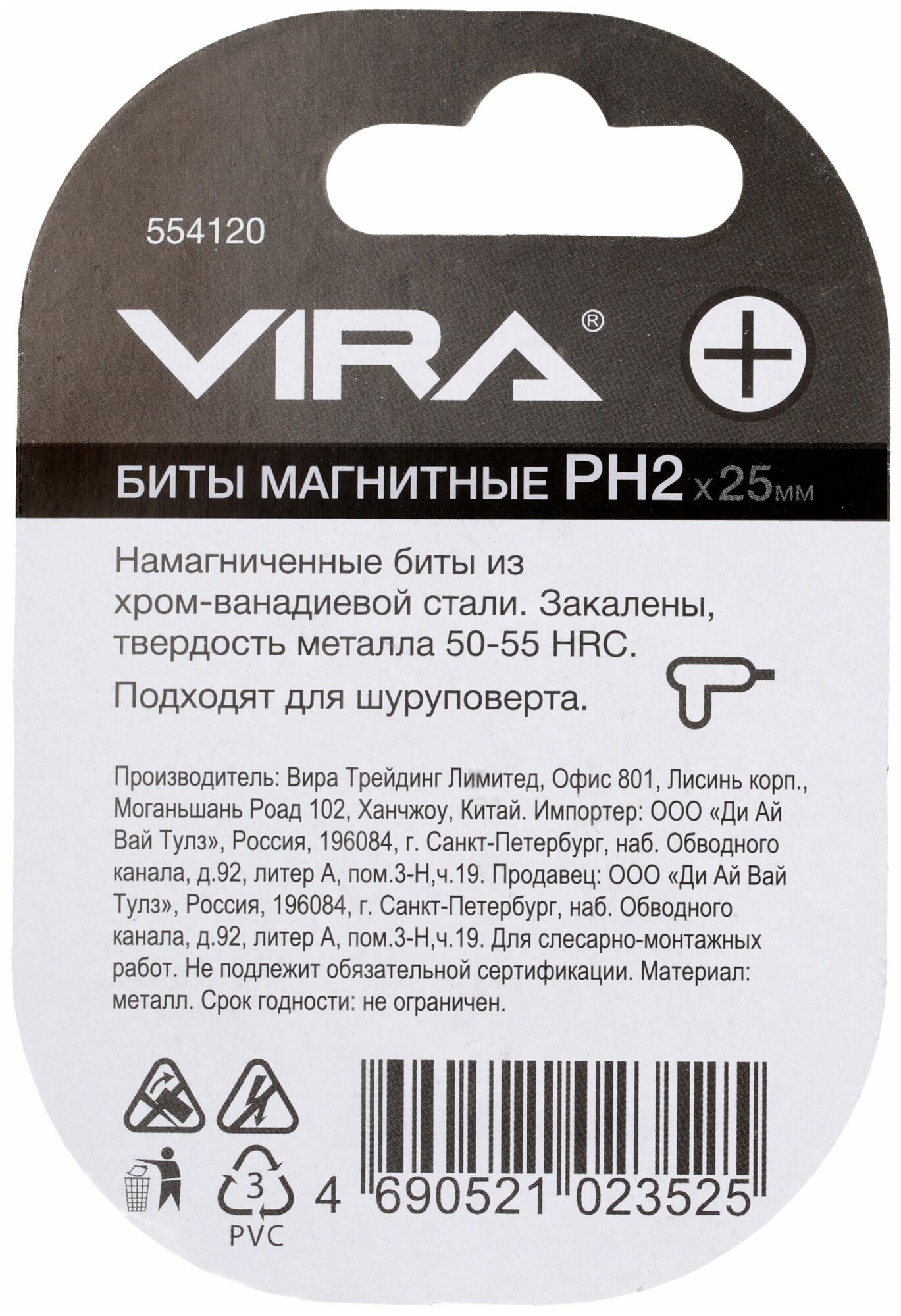 Magnetic cross bit Vira PH2x25 mm, 2 pcs. 10 pieces.