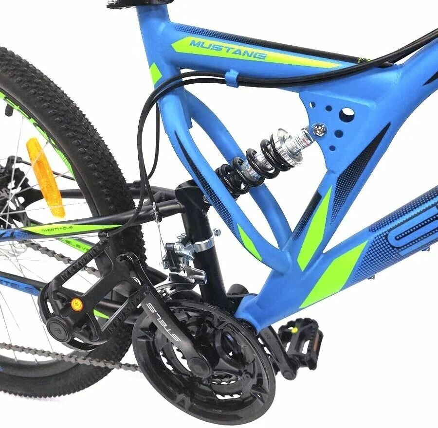 Mountain Stels Mustang MD V010, 24, 18 speed, dual suspension, red/neon/blue
