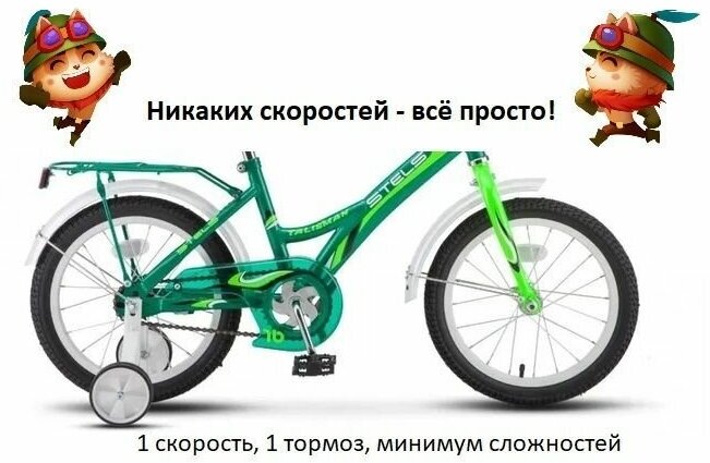 Children's STELS Talisman, 16, green, extra. wheels, 2018