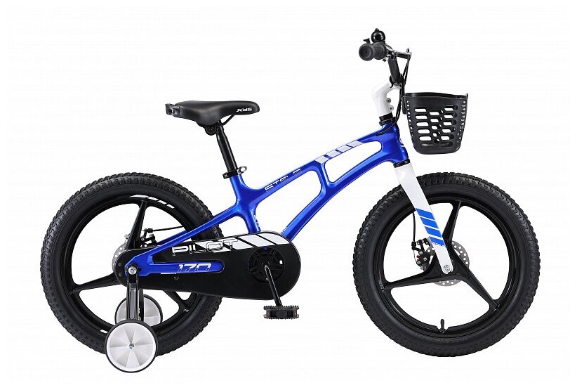 Children's STELS Pilot 170 MD, 18, blue, extra. wheels, 2021