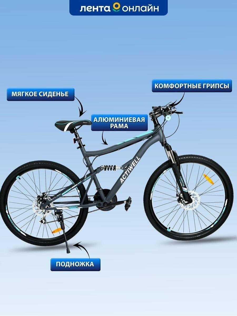 Mountain ACTIWELL Hurricane 27.5, 21 speed, up to 100 kg, graphite blue, teenage / adult, Tape Art. HUR26AL-U