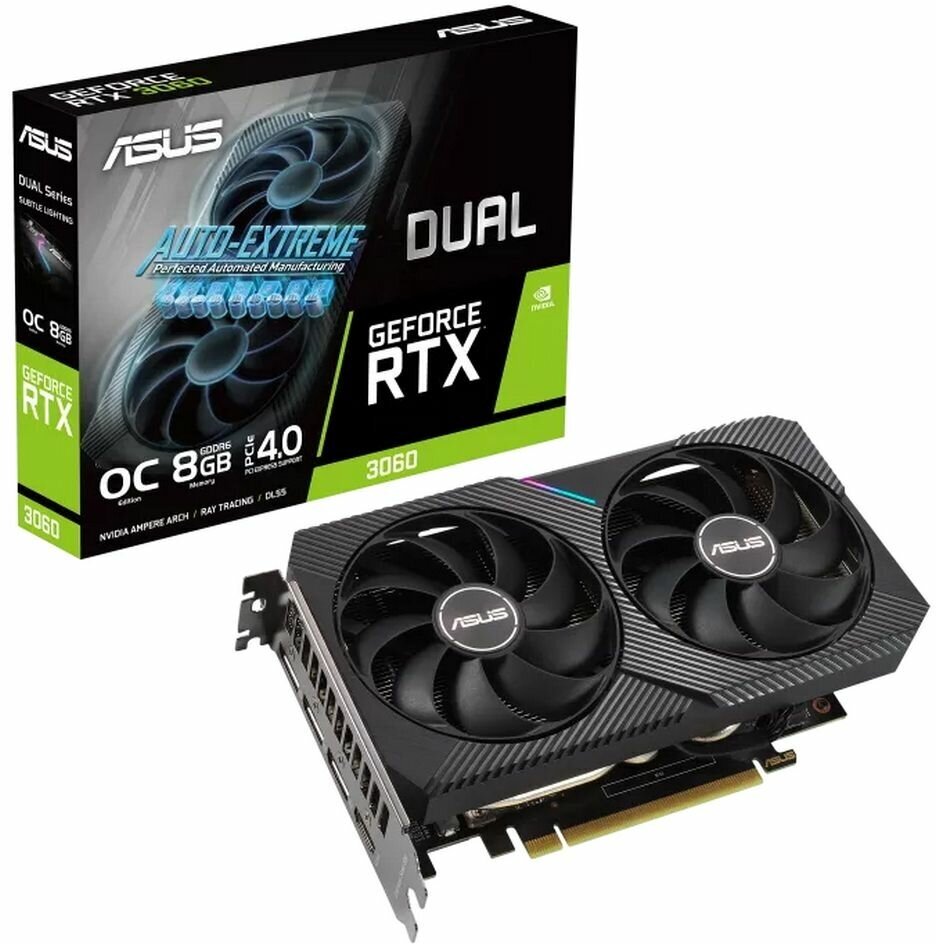 Graphics card name: NVIDIA GeForce RTX 3060, video memory size: 8 GB, graphics card developer: NVIDIA, product line: GeForce, memory type: GDDR6, memory bus width: 128 bit