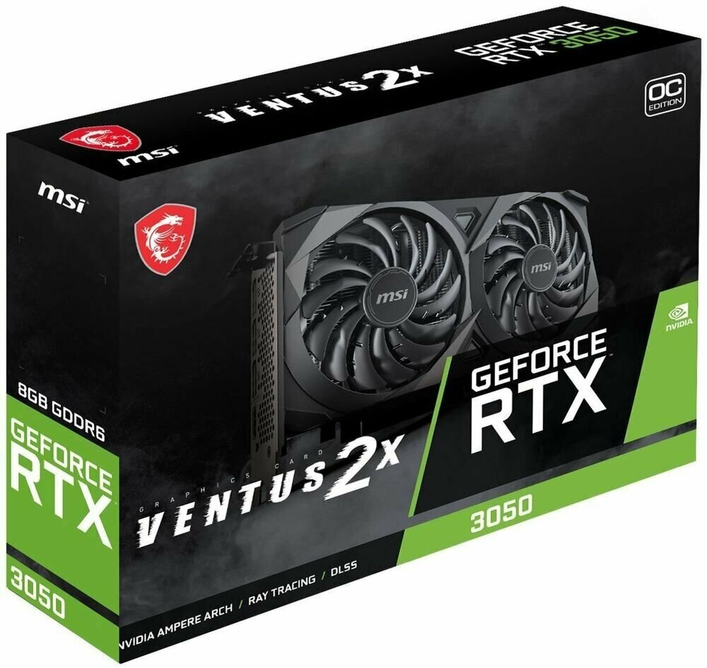Graphics card name: NVIDIA GeForce RTX 3050, video memory size: 8 GB, graphics card developer: NVIDIA, product line: GeForce, memory type: GDDR6, memory bus width: 128 bit