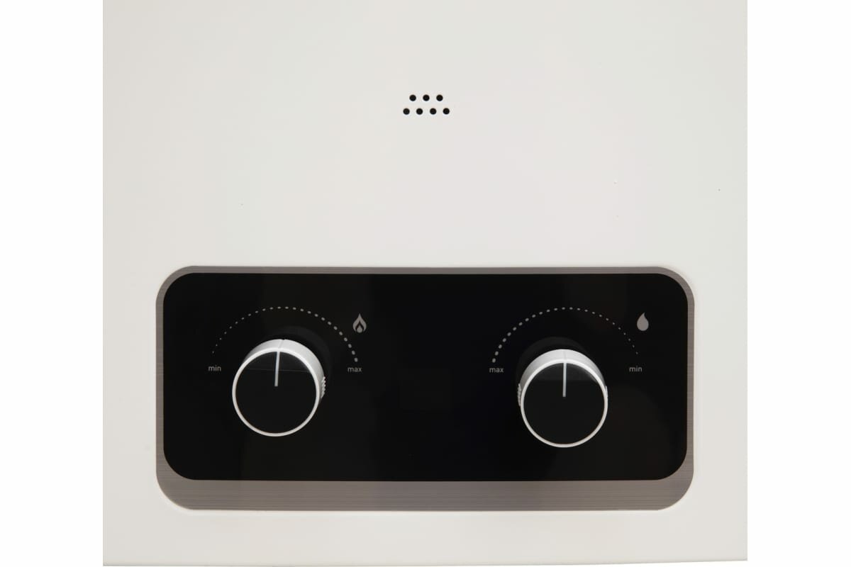 Type of water heater: instantaneous, tank volume: 60 l, heating method: gas, installation: wall-mounted, location: vertical, connection: bottom, internal coating of the tank: enamel, power consumption: 20 kW, depth: 224 mm, shi