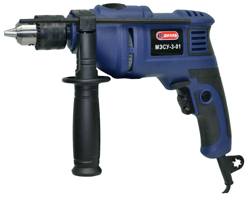 Type: drill, power type: from the network, presence of a blow for the drill: impact, chuck type: key, functions: work in the rack of a drilling machine, reverse, rotation speed adjustment, power consumption: 600 W, features cons