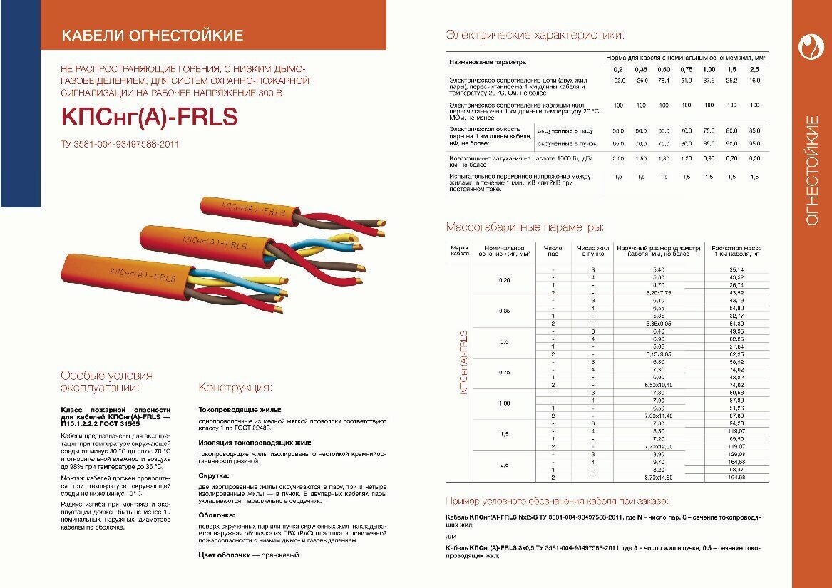 Cable product type: cable, cable type: assembly, marking: KPSngA-FRLS, core material: copper