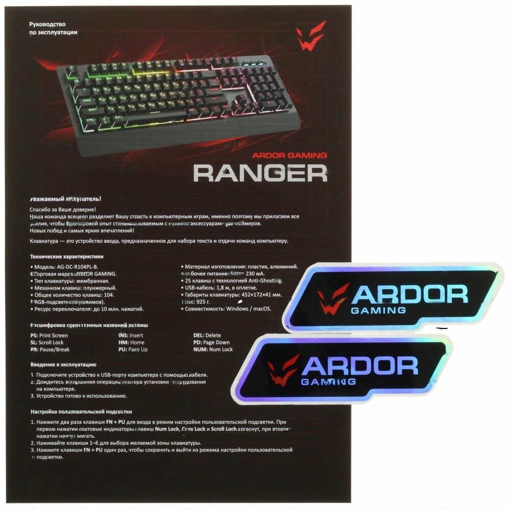 The keyboard comes with a blank acrylic plate that can be imprinted with any image and then installed in the Aura backlit slot provided for it; up to six profiles 1 - default + 5 custom