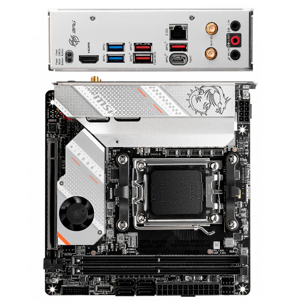 Socket: AM5, chipset name: AMD B650, form factor: mini-ITX, processor manufacturer: AMD, memory type: DDR5 DIMM, DDR5, number of memory slots: 2, number of M.2 slots: 2, number of PCI-E slots x16: 1, wireless interfaces: Bluetooth, Wi-Fi 802.11ax,