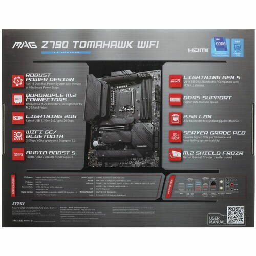 DisplayPort, HDMI, LAN RJ-45, SMA for Wi-Fi antenna x 2, USB 3.2 Gen1 Type-A x 4, USB 3.2 Gen2 Type-C, USB 3.2 Gen2x2 Type-C, S/PDIF optical output