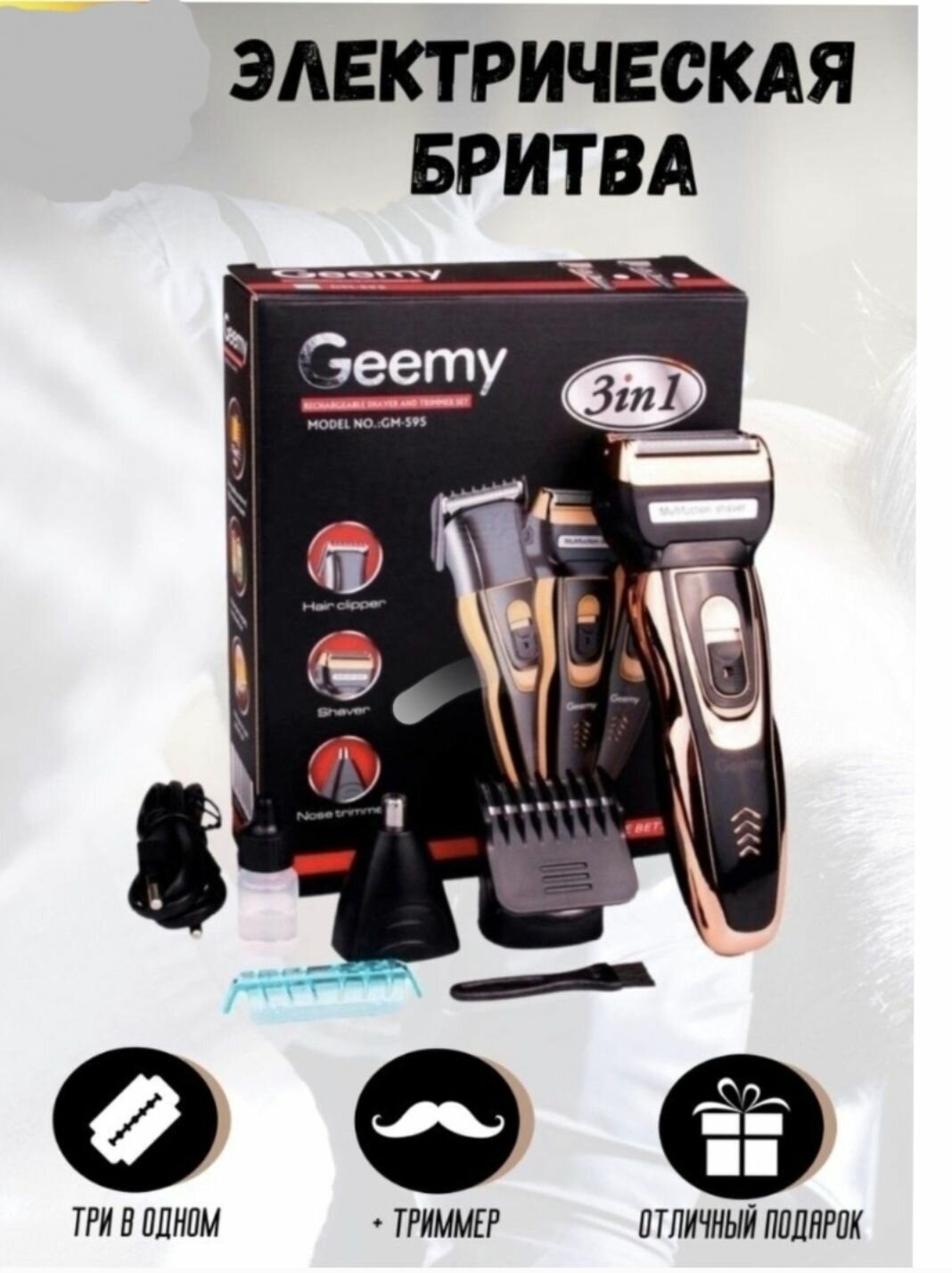 GeeMy Electric Shaver, Beard, Nose and Ear Trimmer, Gold