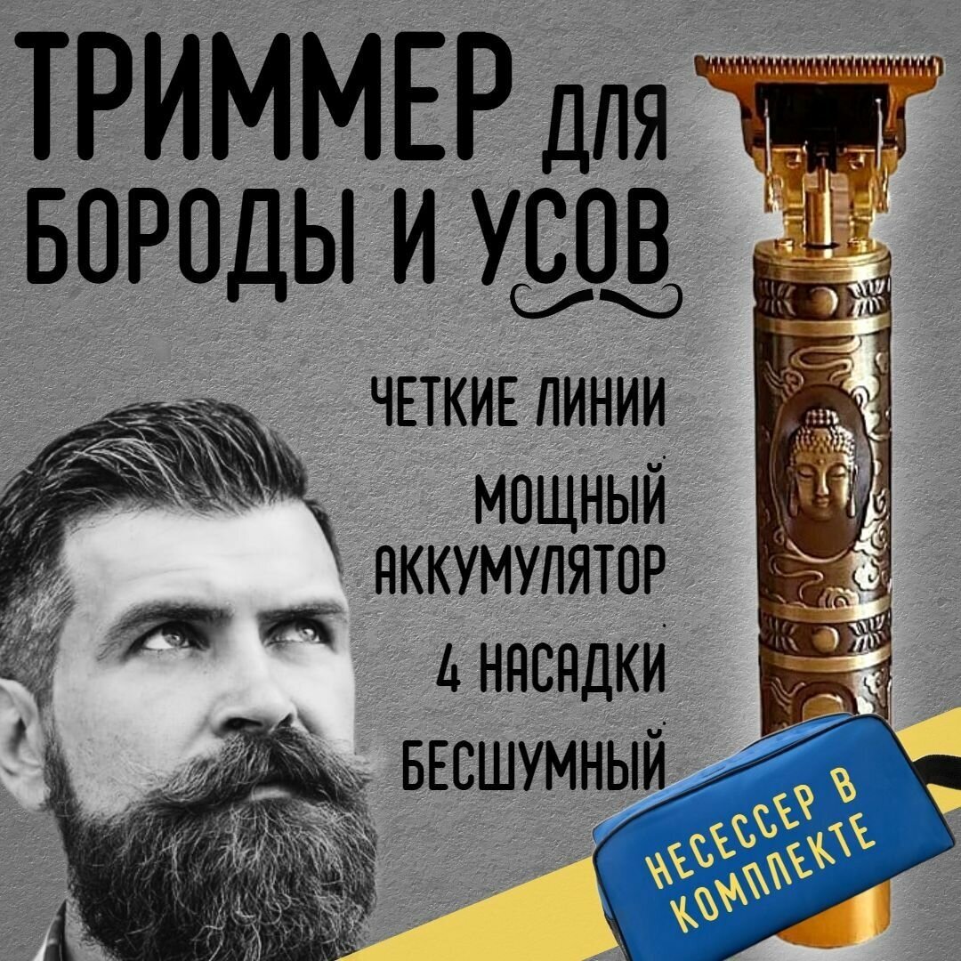 Men's beard, mustache, hair trimmer Buddha / 4 attachments, USB cable, oil for lubrication, cleaning brush and travel case included