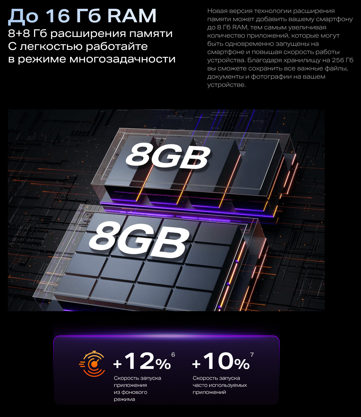 Screen diagonal: 6.66", number of main cameras: 3, memory: 128 GB, 256 GB, RAM: 8 GB, battery capacity: 5000 mAh, screen resolution: 2400x1080, screen refresh rate: 60 Hz, memory card slot