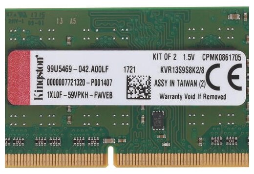Kingston ValueRAM 8GB 4GB x 2 pcs. DDR3 1333 MHz SODIMM CL9 KVR13S9S8K2/8