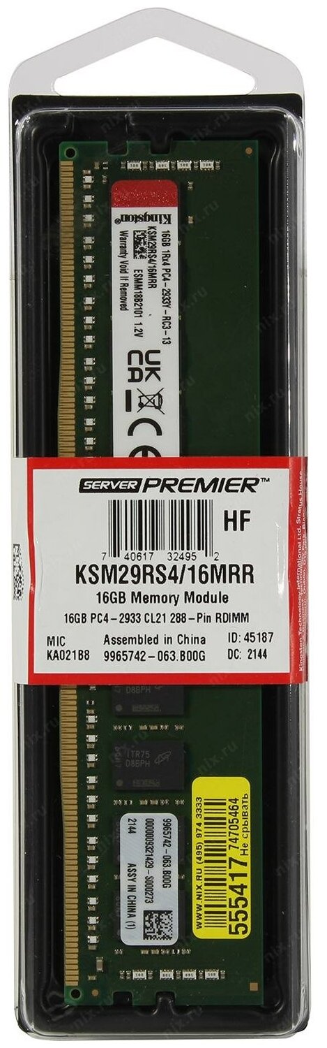 Type: DDR4, capacity of one module: 16 GB, clock frequency: 2933 MHz, form factor: DIMM, number of modules included: 1 pcs., CL: 21, features: Registered