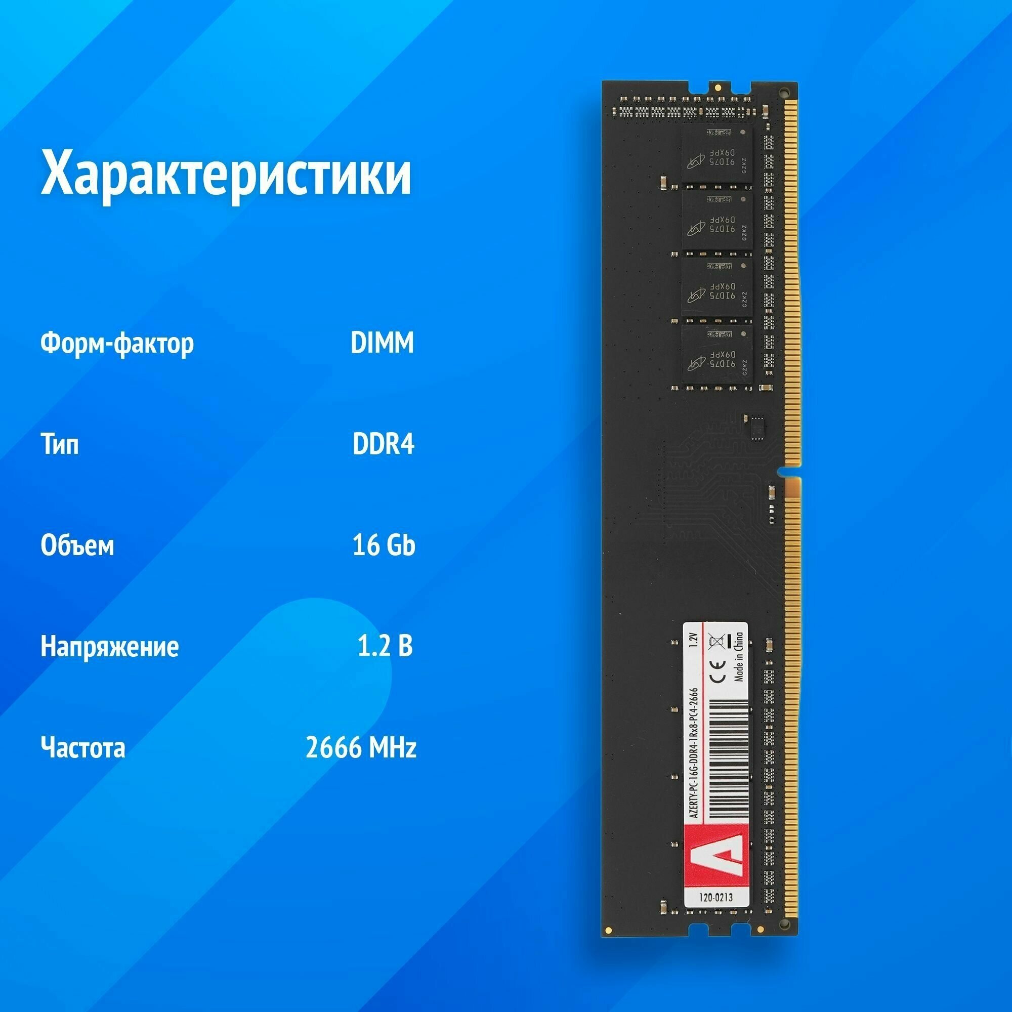 Type: DDR4, capacity of one module: 16 GB, clock frequency: 2666 MHz, form factor: DIMM, number of modules included: 1 pc.