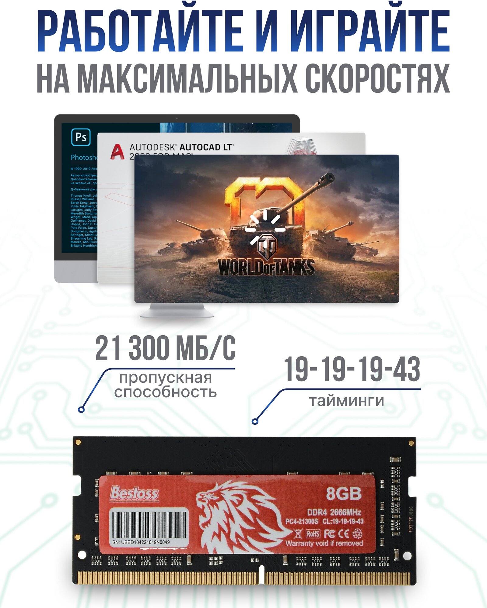 Type: DDR4, capacity of one module: 8 GB, clock frequency: 2666 MHz, form factor: SODIMM, number of modules included: 1 pc.