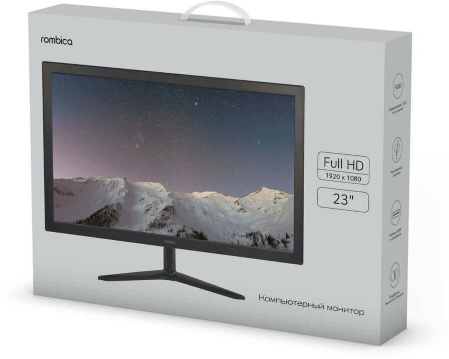 23.8 Rombica SkyView M23 mate black TN, 1920x1080, 16:9, 250cd/m2, 3000:1, 14ms, VGA, HDMI MUT-001
