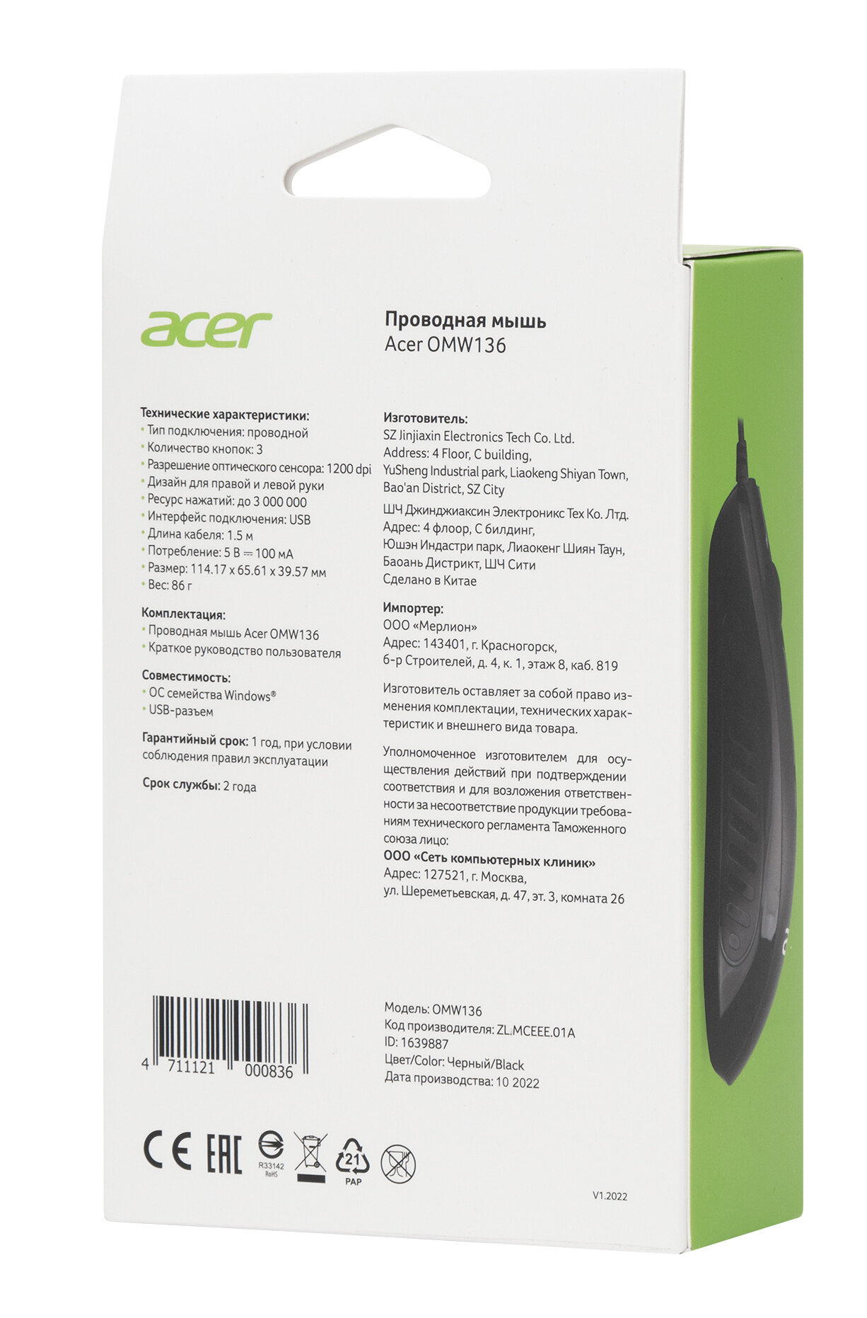 Connection interface: USB Type A, design: left-handed, right-handed, number of keys: 3, optical sensor resolution: 1000 dpi, cable length: 1.50 m