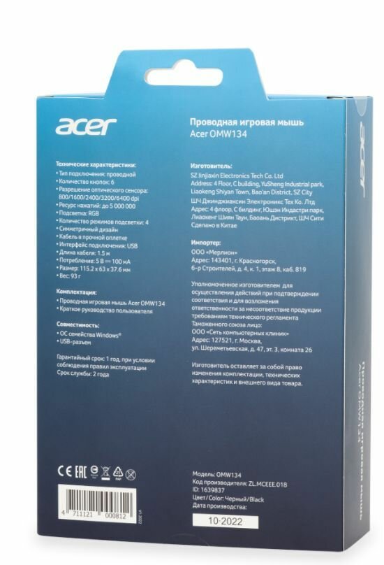 Acer OMW134 black optical 3200dpi USB 5but