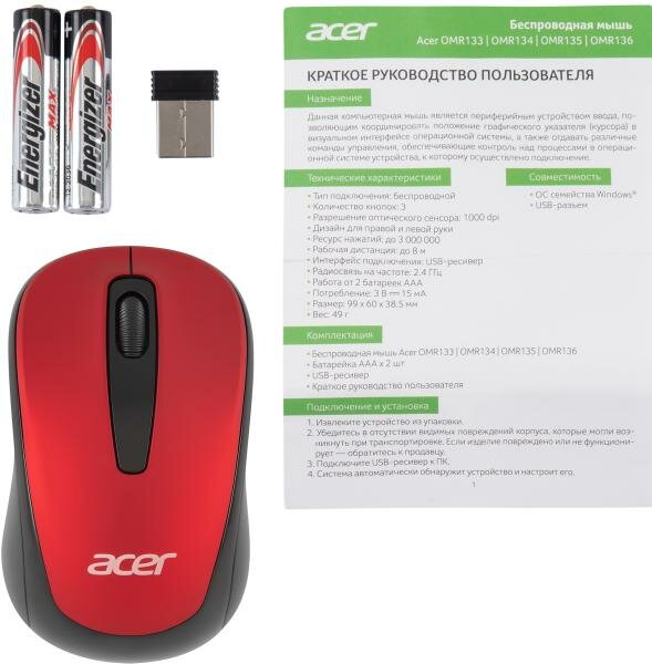 Acer OMR136, optical, wireless, USB, red [zl. mceee.01j]