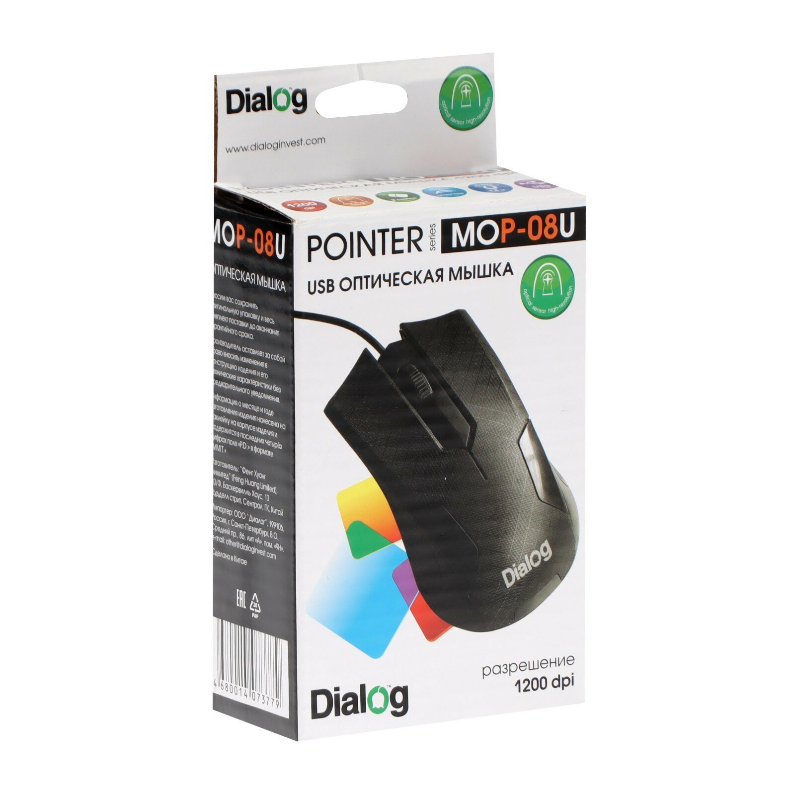 Dialog MOP-08U Pointer Optical, wired, optical, 3 buttons, 1200 dpi, USB, black