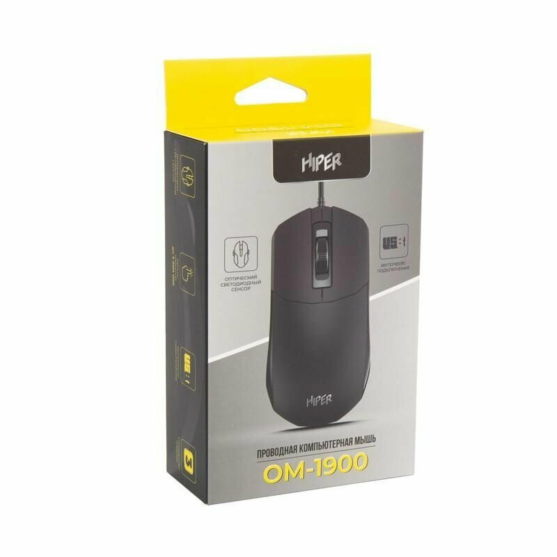 HIPER wired OM-1900 1000dpi, black, 1.5m, USB, 3knp