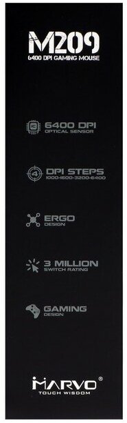 MARVO M209, gaming, wired, backlit, 6400 dpi, USB, black