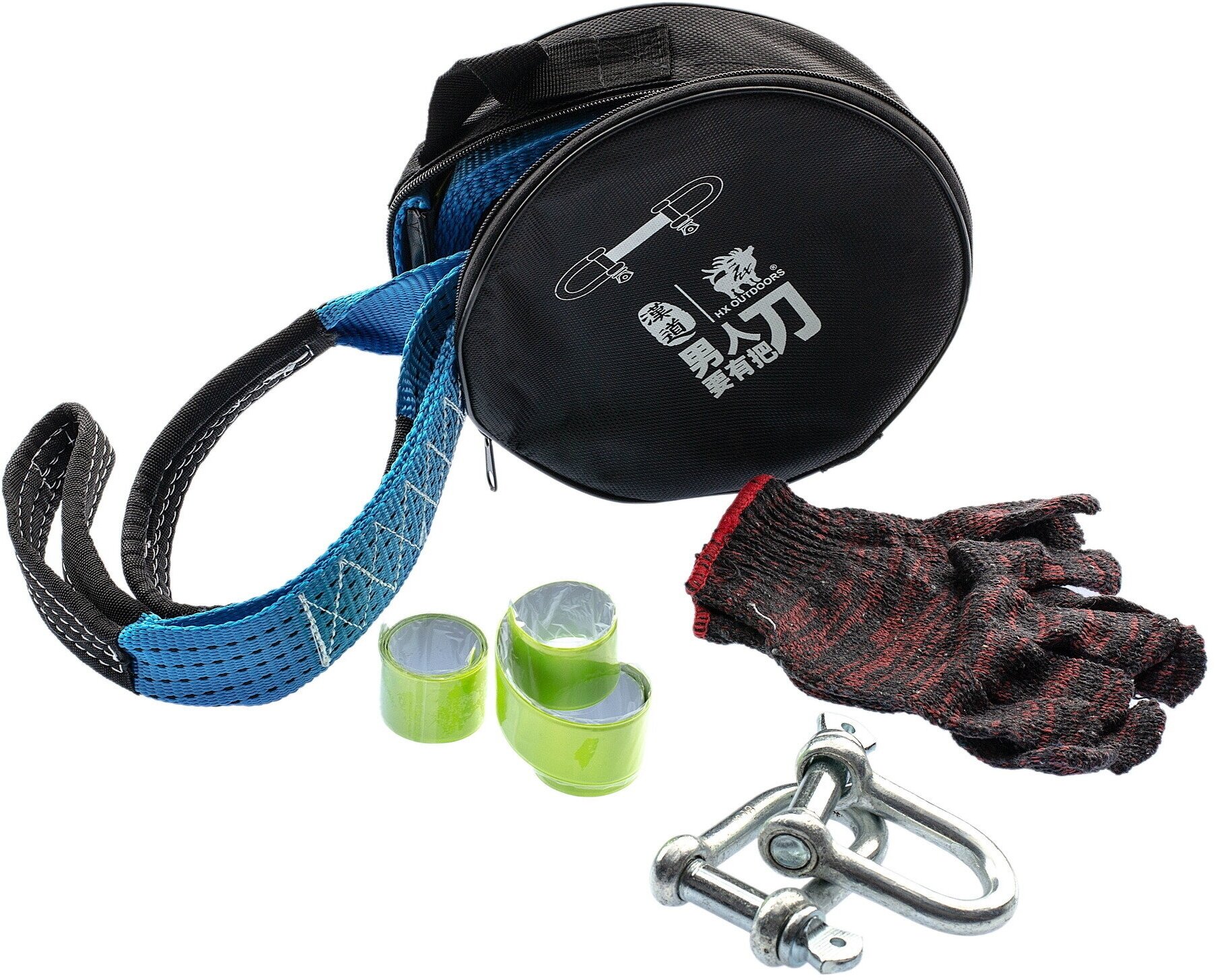 Set includes: first aid kit, shovel, jumper wires, tow rope, flashlight, number of items: 12 pieces, winter, storage bag, type of vehicle: cars, motorcycles