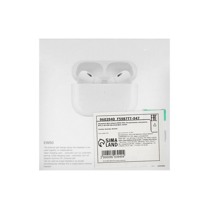 Wireless Bluetooth headphones with charging case HOCO EW50 / True wireless stereo headset Bluetooth white / vacuum